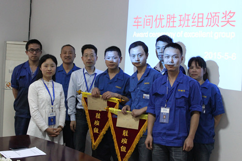 5月6日下午,在公司培訓中心舉行了第一次車間優勝班組頒獎典禮,由公司副總李金偉給優勝班組代表頒獎。下圖為頒獎儀式現場相關人員合影。