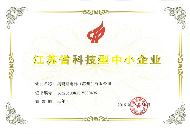 在殘酷的電梯市場競爭中,我司每年持續拿出資金用于新產品的研發及現有產品的持續優化改進,使得奧瑪斯的產品“性價比”更高,在我司的產品上保持了“人有我新、人無我有”的創新特色,贏得了廣大客戶的信任與好評。同時我司也十分注重技術成果的專利申請與保護工作。一系列的付出、持續的付出必將贏得回報,我們先后獲得了“江蘇省高新技術企業”、“江蘇省科技型中小企業”等榮譽證書。